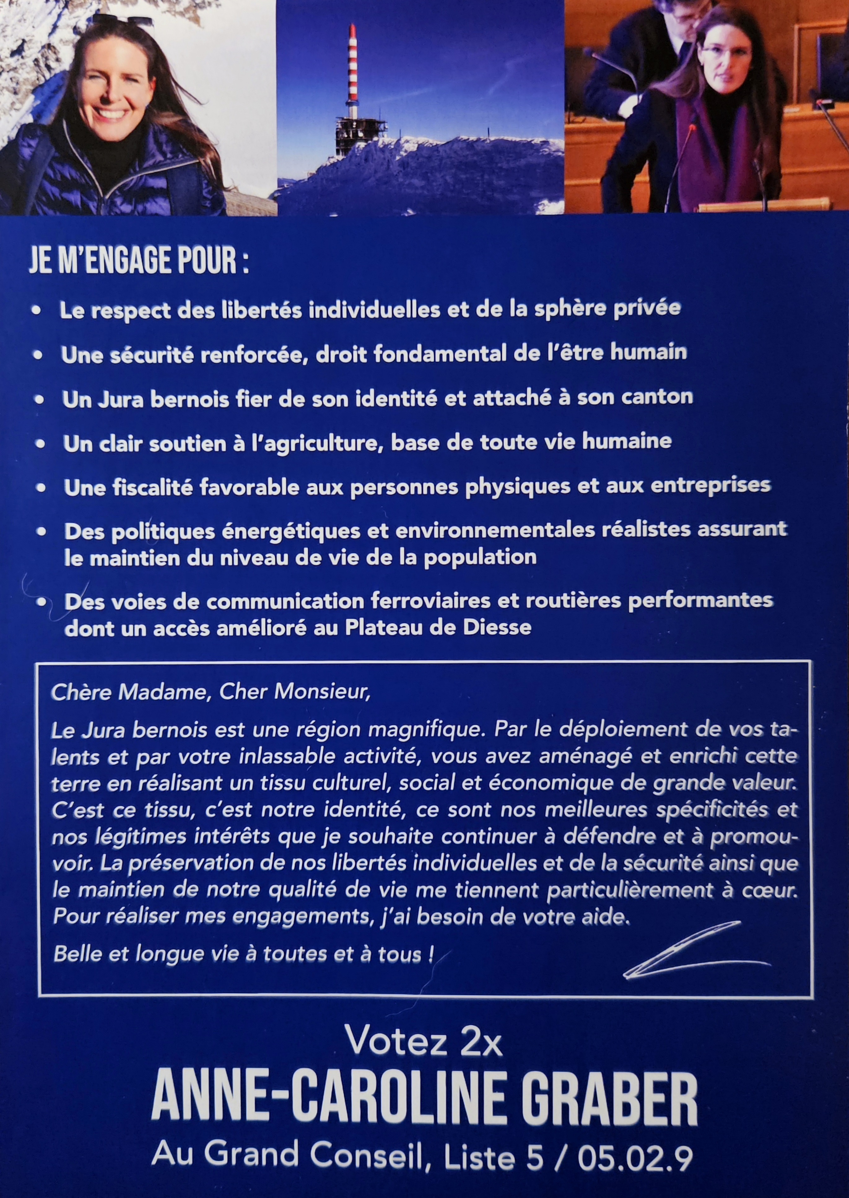 Mon profil sur smartvote (une fois sur le site, choisir "français", "Election du Grand Conseil bernois – 25 mars 2018", "Anne-Caroline Graber", "UDC / sortante")